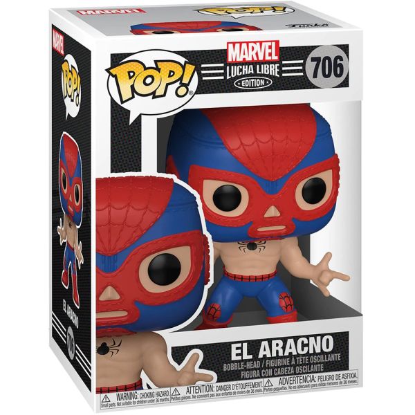 Funko Pop fabricado en vinilo con una altura aproximada de 10 cm. El Aracno de Marvel Lucha Libre es una versión enmascarada con nombre en español de los personajes clásicos de la editorial al estilo de la icónica lucha libre mexicana. Imprescindible para cualquier verdadero fanático de Marvel.