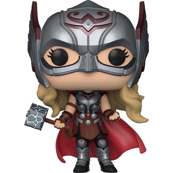Funko Pop fabricado en vinilo con una altura aproximada de 10 cm. Imita a Mighty Thor, quien, en Marvel Cinematic Universe, es Jane Foster, quien se estaba muriendo de cáncer, pero al levantar el martillo Mjölnir, obtiene los poderes y la resistencia del dios asgardiano y se convierte en el Mighty Thor. Se le presenta el atuendo típico de Thor junto a Mjölnir, todo roto por Hela; una figura ideal para los amantes de esta franquicia.