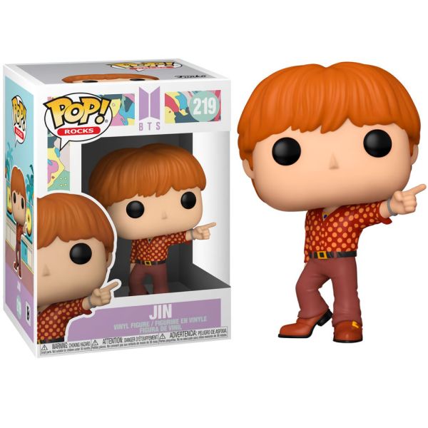 Muñeco Funko Pop hecho de vinilo con una altura aproximada a 10 cm. Llega Jin Dinamite uno de los componentes del grupo surcoreano BTS. En esta figura podemos ver a Jin con unos pantalones marrones, zapatos marrones, cinturón negro y camisa roja con lunares amarillos. Imprescindible para todos fanáticos del grupo surcoreano.