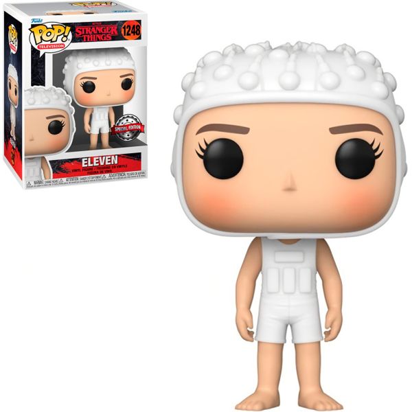 Muñeco Funko Pop hecho de vinilo con una altura aproximada a 10 cm. Directamente desde la cuarta temporada de Stranger Things, llega el Funko Pop de Eleven Exclusive. Ideal para los fanáticos de Stranger Things. Sus habilidades telequinéticas y su conexión con un aparente universo paralelo le salvaron la vida y le permitieron escapar del lugar donde había sido encarcelada. Al salir, se encuentra con el oficial Hopper, quien le brinda refugio. Cuando conoce a los otros niños, como Mike y Dustin, toda su vida cambia, y para mejor. Ella comienza a identificarse y actuar como una adolescente, acompañándolos en diferentes aventuras y salvando a la ciudad de diversas amenazas.