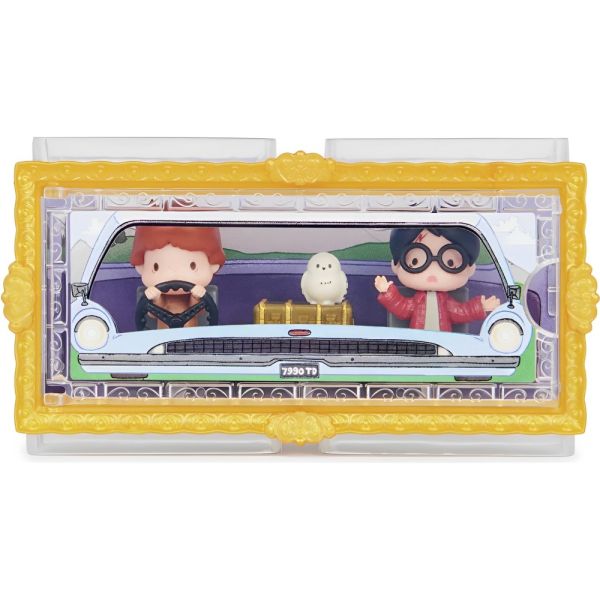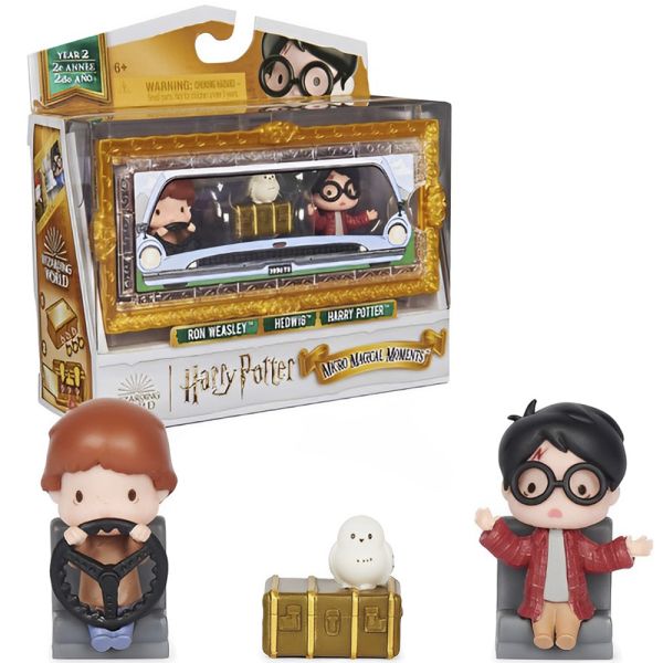 El muñeco Wizarding World con Harry, Ron y Hedwig, es un set de figuras coleccionables que permite a los fanáticos de Harry Potter revivir momentos inolvidables de la película "Harry Potter y la Cámara Secreta". Este atractivo multipack incluye miniaturas detalladas de 4 cm de Harry Potter, Ron Weasley y Hedwig, junto con una vitrina de exposición transparente y tres soportes para las figuras. Cada detalle ha sido cuidadosamente diseñado para capturar la esencia de los personajes, están sentados en el icónico coche volador y Hedwig está posada en el equipaje, preparados para una nueva aventura. La vitrina de exposición, que representa el coche encantado de los Weasley, añade un toque especial al set, proporcionando la ilusión de que los personajes están en movimiento dentro del vehículo. Esta presentación única encantará tanto a los fanáticos como a los coleccionistas. Las figuras pueden exhibirse de varias maneras: en sus soportes, dentro de la vitrina, o individualmente.