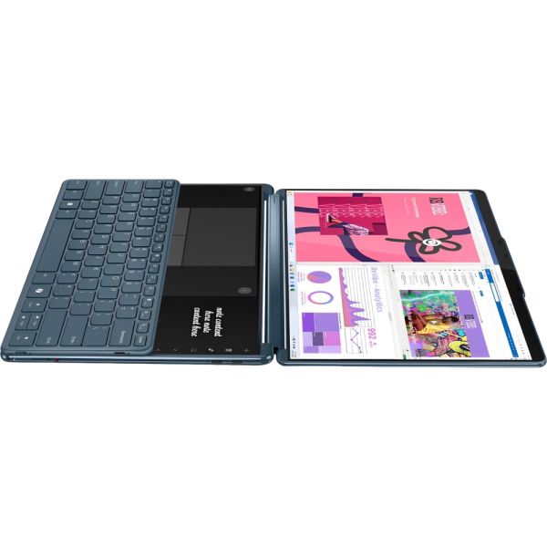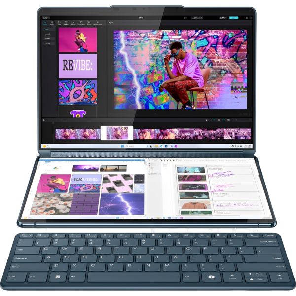 La notebook Lenovo Yoga Book 9i Duo, es el dispositivo definitivo para quienes buscan innovación y eficiencia. Este equipo redefine la productividad híbrida con su diseño de doble pantalla OLED multitáctil de 13.3", perfecta para la multitarea. Con tecnología SuperBright Plus y tratamiento antirreflejo, ofrece colores vibrantes incluso bajo luz solar directa, gracias a su resolución de 2880 x 1880. Impulsada por un procesador Intel Core Ultra 7 con 12 núcleos, garantiza un rendimiento potente y eficiente, complementado por la tecnología Intel Turbo Boost para momentos que requieren potencia adicional. Sus gráficos integrados proporcionan una excelente calidad de imagen, ideal para actividades diarias como navegación web, transmisión de video y juegos casuales. La Lenovo Yoga Book 9i es ideal para profesionales creativos, estudiantes y cualquiera que busque una solución versátil y portátil para trabajar, aprender y disfrutar de contenido multimedia en cualquier lugar. No solo es un dispositivo, es una experiencia que te acompañará en cada faceta de tu vida.
