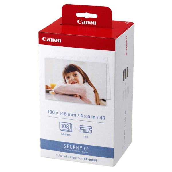 - Papel en tamaño tarjeta postal (10x15 cm.) en paquetes de 108 hojas, incluyendo el cartucho de tinta.- Compatible con las siguientes impresoras:Selphy CP 200Selphy CP 220Selphy CP 300Selphy CP 330Selphy CP 400Selphy CP 500Selphy CP 510Selphy CP 600Selphy CP 710Selphy CP 720Selphy CP 730Selphy CP 740Selphy CP 760Selphy CP 800Selphy CP 810Selphy CP 1000Selphy CP 1200Selphy CP 1300