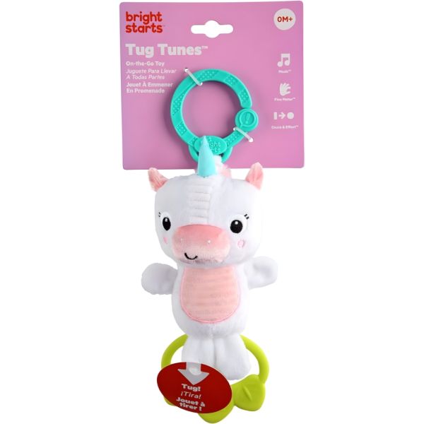 Descubre la magia del juguete colgante Bright Starts Tug Tunes Unicornio diseñado para estimular los sentidos de tu bebé desde los 0 meses en adelante. Con un diseño divertido y colorido, este adorable unicornio de peluche está fabricado con materiales de alta calidad: 65% tela, 32% plástico y 3% metal. Este juguete es ideal para fomentar el desarrollo de las habilidades motoras finas, ya que invita al bebé a practicar el alcance y el tirón. Al jalar del mango verde, el juguete responde con cuatro encantadoras melodías que cautivarán a tu pequeño. Las dimensiones compactas de 32.5 x 14 x 7 cm permiten llevarlo fácilmente en el portabebés o el cochecito, convirtiéndolo en el compañero perfecto para cualquier aventura. La interacción con el Tug Tunes Unicornio no solo es musicalmente mágica, sino que también proporciona una experiencia educativa al ayudar al bebé a comprender la relación causa y efecto. Además, el juguete viene con un práctico enlace que facilita su transporte mientras estás en movimiento. Sintoniza la diversión con solo un tirón y observa cómo tu bebé se deleita con las cuatro melodías diferentes, haciendo que cada momento de juego sea una experiencia encantadora y educativa.
