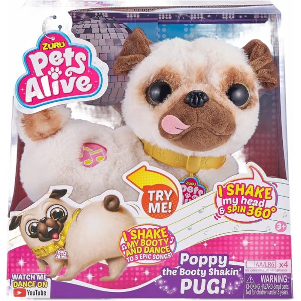 Perro de Peluche Zuru Pets Alive Poppy El Pug que Baila, con su diseño tierno y colorido, es ideal para ratos de diversión y entretenimiento, estimulando la imaginación y creatividad en niños a partir de 3 años. Poppy, el Pug, es un experto bailarín que puede moverse, girar y sacudir su colita al ritmo de 3 divertidas canciones. Con su diseño realista y energía contagiosa, es imposible resistirse a unirse a la diversión. ¡Poppy está listo para que toda la familia se levante y baile con alegría!