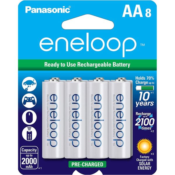 Pila recargable de Ni-MH precargada con energía solar para uso inmediato con capacidad de 2000 mAH que garantiza una carga duradera. Su tecnología recargable permite estar ahorrando una batería de la basura, reduciendo su impacto en el medio ambiente. Además, puede mantener hasta el 70% de su carga después de 10 años (si no se utilizan) y se puede recargar hasta 2.100 veces.