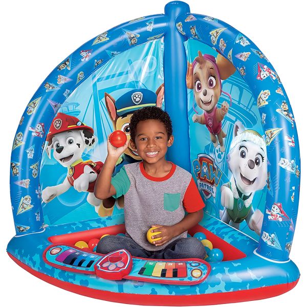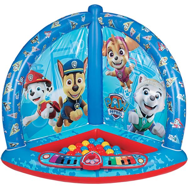 Sumérgete en la máxima diversión con nuestra emocionante piscina inflable Paw Patrol Playland. Diseñada en forma de triángulo y fabricada con PVC duradero, esta piscina es perfecta para niños mayores de 2 años. La experiencia se vuelve aún más emocionante con el módulo de sonido y el tapete de música interactivo que incluye. Imagina la diversión de tus hijos mientras interactúan con los cachorros héroes de Paw Patrol. Con solo tocar un botón, se activan voces y sonidos increíbles que les brindarán una experiencia de juego única y emocionante.Además, con las 20 pelotas suaves y flexibles que vienen incluidas, los niños podrán lanzar, jugar y gatear, disfrutando de horas de entretenimiento y actividad física. Los coloridos gráficos de los personajes de Paw Patrol mantendrán a tus hijos entretenidos y los sumergirán en emocionantes juegos imaginativos mientras se divierten en el agua. Así que no esperes más. Invita a Chase y sus amigos peludos a una jornada de diversión en la Musical Rescue Playland. La diversión nunca termina con esta piscina inflable única y llena de sorpresas.