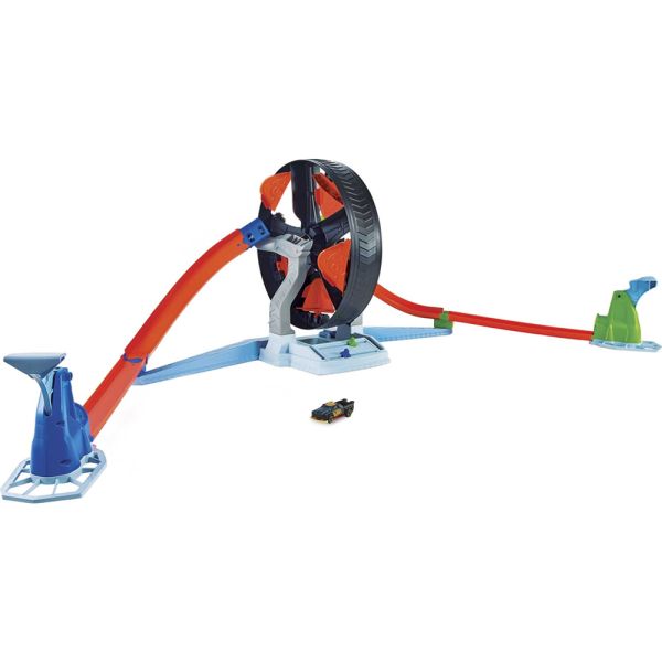 Este emocionante juego de Hot Wheels incluye todo lo que los niños necesitan para poner a prueba sus habilidades de conducción de alto rendimiento. El set de juego ofrece horas de diversión y toneladas de imaginación con lanzadores, vehículos, pistas y una rueda giratoria incluidos. Además, cuenta con instrucciones para un armado sencillo. El lanzador ayuda al desarrollo de las habilidades motoras, mientras que el desafío de pasar el vehículo por la rueda giratoria incorpora conceptos importantes como velocidad, distancia y contraste. Lanzar el vehículo por la rueda giratoria para obtener puntos proporciona una actividad enfocada y un objetivo que lleva el juego con vehículos a otro nivel de diversión y descubrimiento. En definitiva, es un excelente regalo para niños a partir de cinco años.Observación:Los colores y las decoraciones pueden variar.