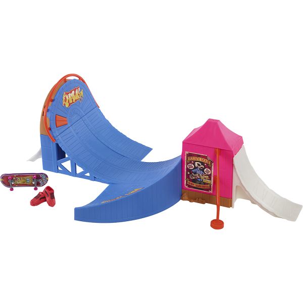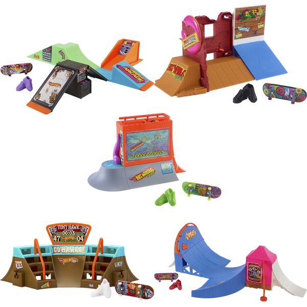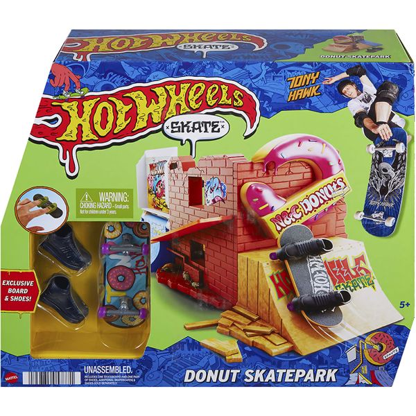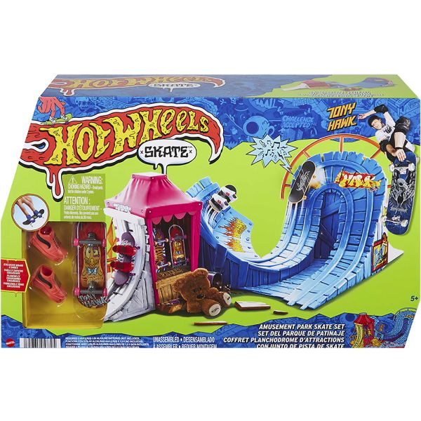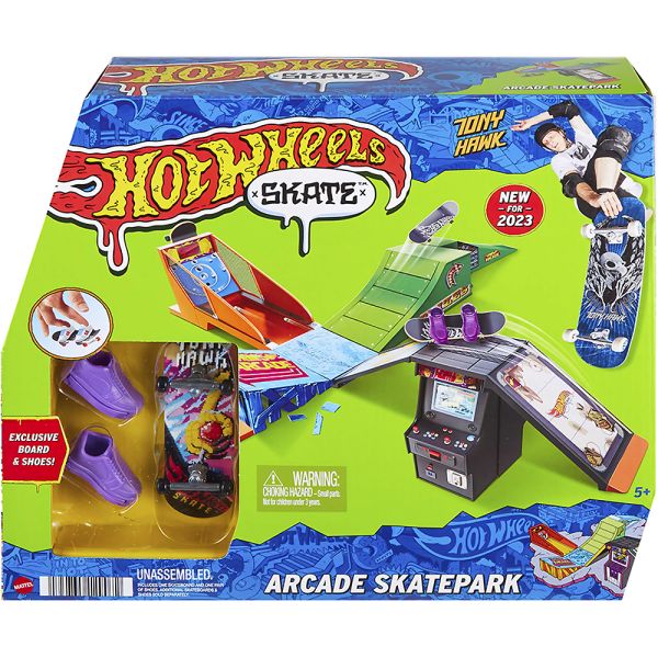Contiene: 1 pista de jugeute, 1 fingerboard exclusiva de Hot Wheels Skate y 1 par de zapatillas de Hot Wheels Skate