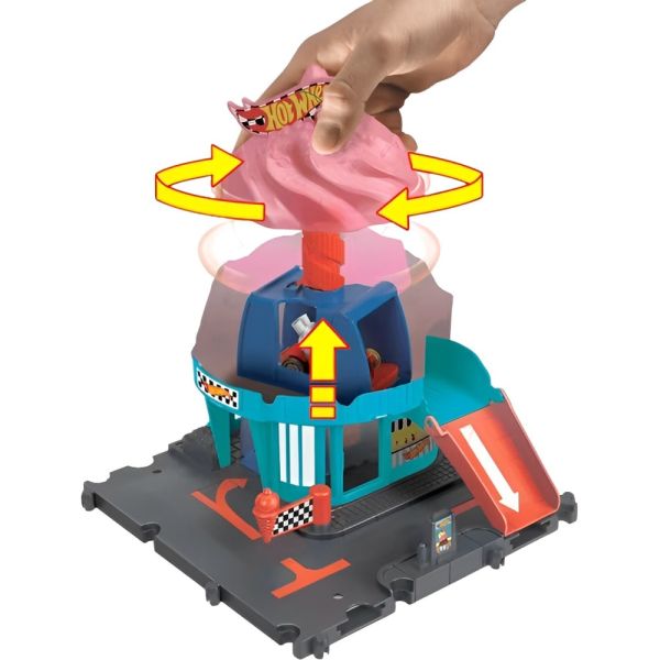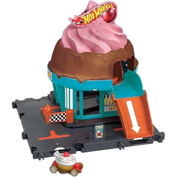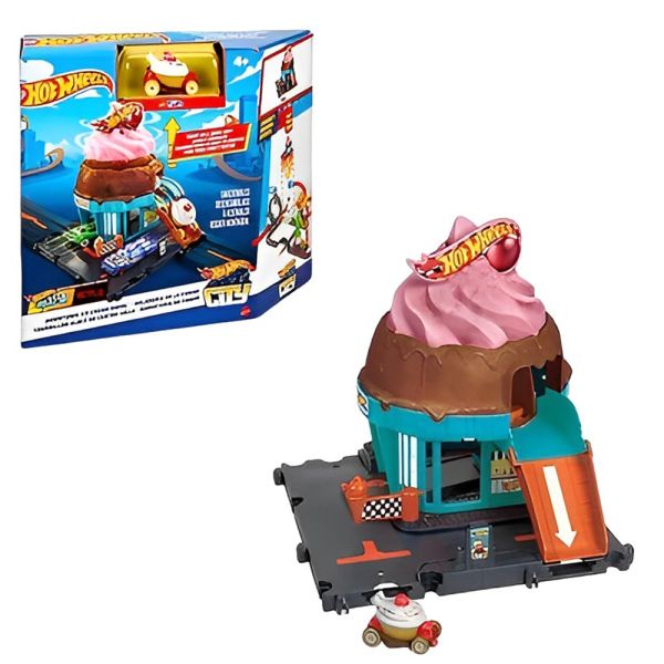 Incluye: 1 juego Hot Wheels City Downtown Ice Cream Swirl y 1 auto Hot Wheels a escala 1:64.