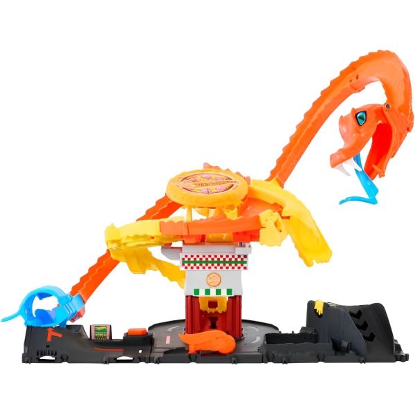 Contiene: 1 juego Hot Wheels City Pizza Slam Cobra Attack y 1 coche Hot Wheels.