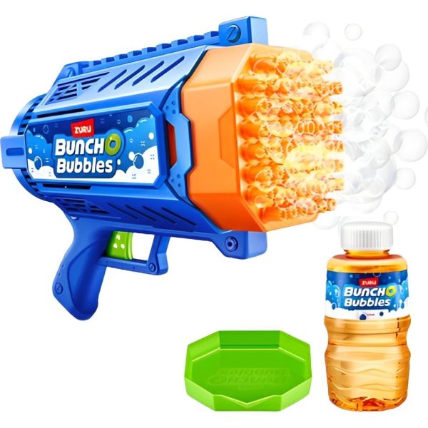 La Pistola de Burbujas Zuru Buncho Bubbles - 125mL ofrece millones de burbujas, explotando 7000 burbujas por minuto a través de sus 26 agujeros. Este blaster motorizado no requiere soplado: simplemente sumerge la punta y dispara. Con su gatillo fácil de usar y diseño liviano, es perfecto tanto para niños como para adultos. Garantiza horas de diversión al aire libre y mejora el ambiente de cualquier fiesta. El paquete incluye un mini lanzador de burbujas motorizado Buncho Bubbles, una solución de burbujas de 125mL y una bandeja para remojar. ¡Ideal para crear momentos mágicos y llenos de diversión!