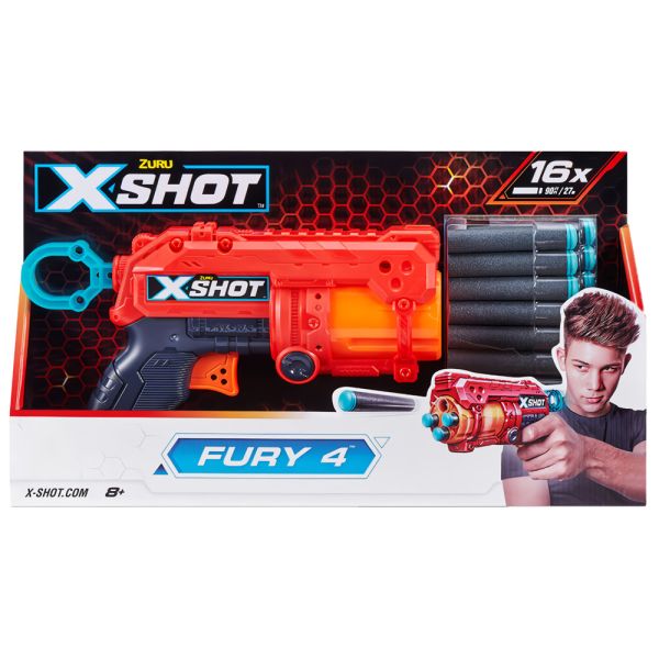 La pistola de juguete Zuru X-Shot Fury 4 viene con 16 dardos y cuenta con un cañón giratorio que te permite lanzar 4 dardos en rápida sucesión. Con un alcance de hasta 27 metros, ofrece una precisión total. El cañón del Fury 4 gira automáticamente, proporcionando la mejor velocidad de disparo absoluta para una experiencia emocionante.