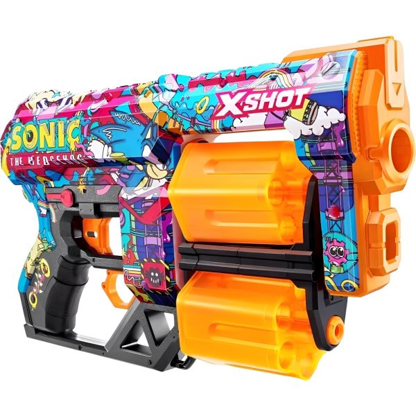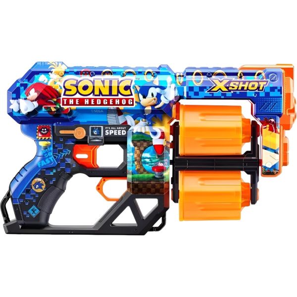 La pistola de juguete Zuru X-Shot Skins Dread Sonic ofrece una experiencia de juego emocionante y segura para los niños. Su diseño ergonómico y resistente la hace ideal para la diversión al aire libre. Equipada con la innovadora tecnología de dardo Air Pocket, esta pistola proporciona un alcance de disparo impresionante de hasta 27 metros aproximadamente. Con una capacidad de 12 dardos y barriles giratorios dobles, la Dread Sonic está lista para la acción y puede enfrentarse a la competencia desde largas distancias, asegurando horas de diversión. Está recomendada para niños de 8 años en adelante, viene con 12 dardos y presenta un estampado diferenciado.