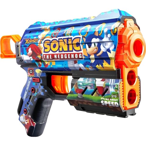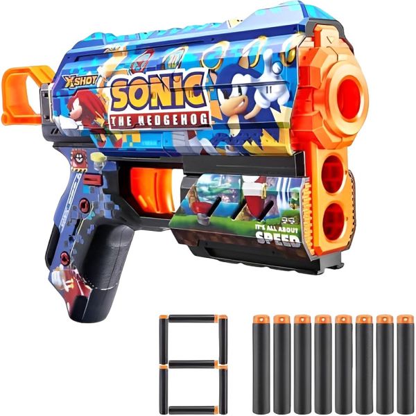 La pistola de juguete Zuru X-Shot Skins Sonic ofrece una experiencia de juego emocionante y segura para los niños. Su diseño ergonómico y resistente la hace ideal para la diversión al aire libre. Equipada con la innovadora tecnología de dardo Air Pocket, esta pistola proporciona un alcance de disparo impresionante de hasta 27 metros aproximadamente. Cuenta con almacenamiento frontal para 2 dardos y está recomendada para niños de 8 años en adelante. La pistola viene con 8 dardos y presenta un estampado diferenciado.