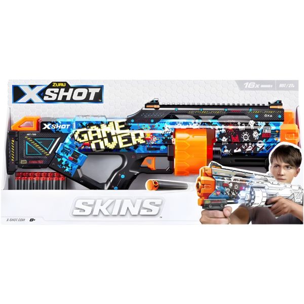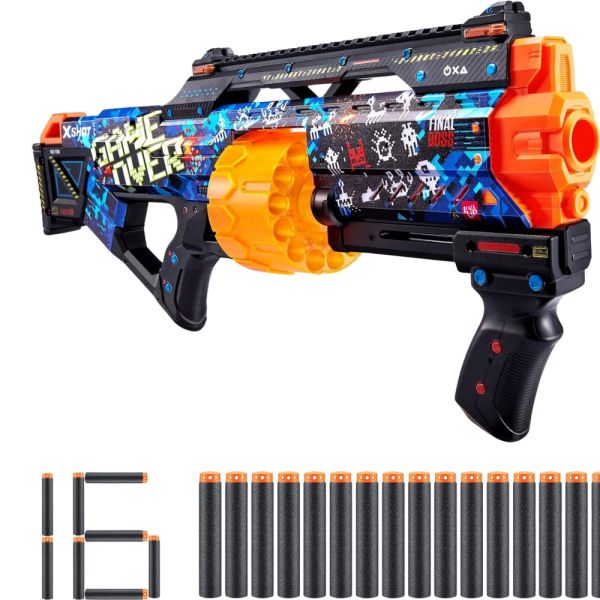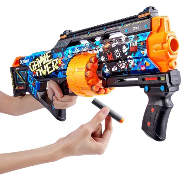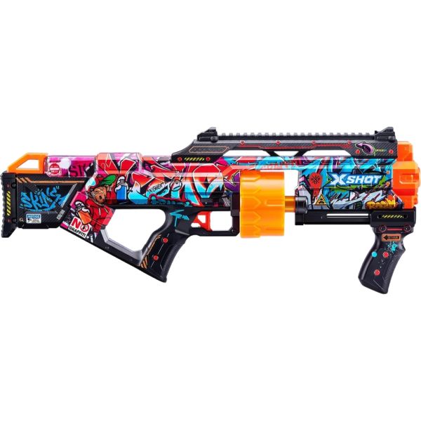 La pistola de juguete Zuru X-Shot Skins Last Stand redefine la emoción del juego con su potente cañón giratorio automático, capaz de albergar 14 dardos y alcanzar múltiples objetivos a una distancia impresionante de hasta 27 metros aproximadamente. Libera la acción con su mecanismo fácil de cebar, permitiéndote disparar 14 dardos en cuestión de segundos. Este blaster no solo ofrece rendimiento, sino también estilo, ya que presenta estampados únicos y viene con 16 dardos de espuma con la avanzada tecnología Air Pocket, asegurando una experiencia de juego emocionante y segura. Observación: Será enviado de manera aleatoria, sin distinción de color y estampado.