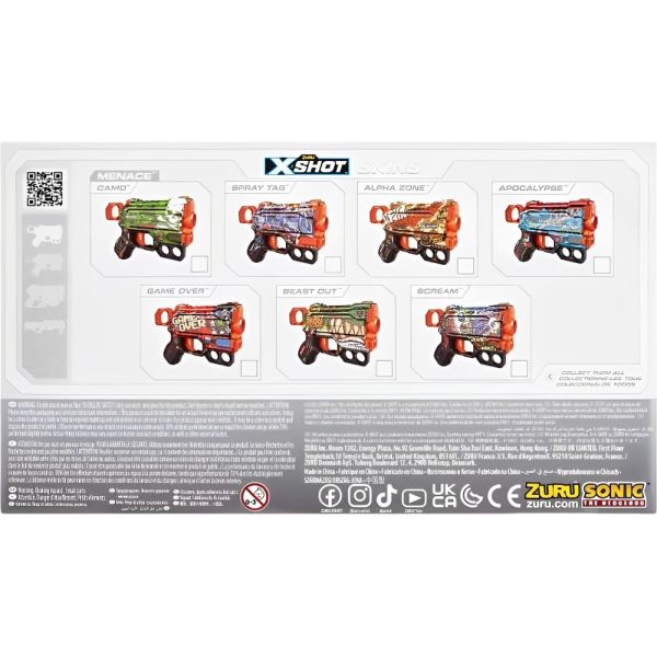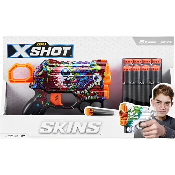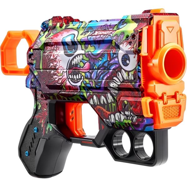 La Pistola de Juguete Zuru X-Shot Skins Menace tiene la potencia necesaria para enfrentarse a objetivos a 27 metros de distancia. Es fácil de recargar y cuenta con almacenamiento de dardos en la parte inferior para una recarga rápida durante la batalla. Este lanzador viene en 7 estampados únicos para coleccionar, añadiendo un toque personal a cada juego. Incluye 8 dardos de espuma con tecnología Air Pocket. Recomendada para niños de 8 años en adelante, la X-Shot Skins Menace es ideal para la diversión y la aventura.