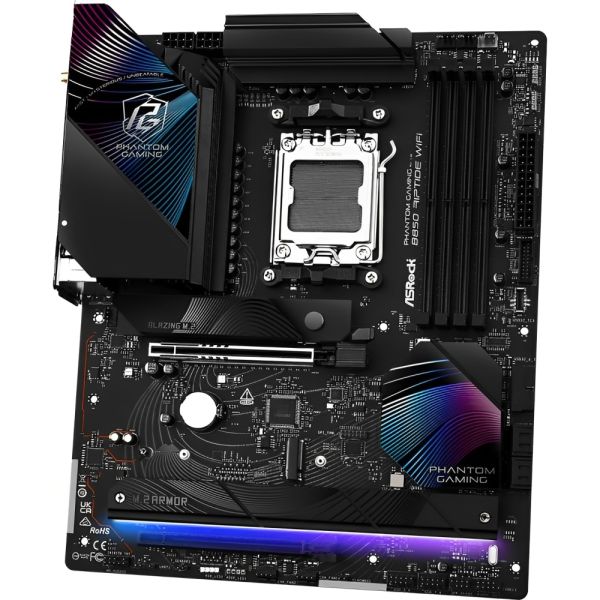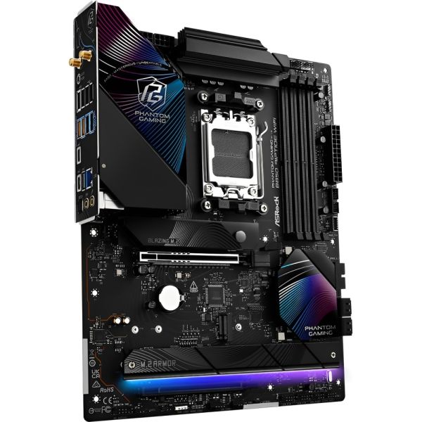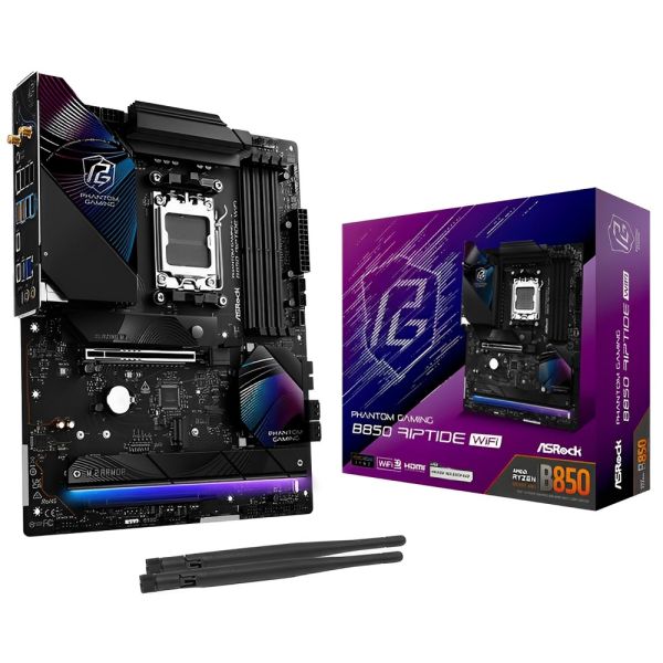 La Placa Madre Asrock Phantom Gaming B850 Riptide Wifi AM5 DDR5 ATXes ideal para entusiastas del gaming que buscan rendimiento y conectividad avanzada. Su formato ATX es compatible con procesadores AMD Ryzen de las series 7000, 8000 y 9000, gracias al socket AM5 y el chipset B850, que garantizan una plataforma sólida y eficiente. Admite memoria DDR5 de hasta 256 GB, lo que permite mayor velocidad y mejor eficiencia energética. Además, ofrece conectividad WiFi integrada para juegos en línea sin interrupciones, junto con puertos USB 3.2 y RJ-45 para transferencias rápidas y conexión estable. Con soporte para almacenamiento M.2 Gen 5.0 y Gen 4.0, esta placa madre brinda un rendimiento excepcional, ideal para gaming de alto nivel y creación de contenido.