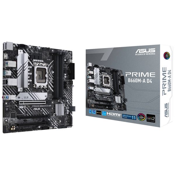 Las placas base de la serie ASUS Prime están diseñadas por expertos para liberar todo el potencial de los procesadores Intel de 12.ª generación. Con un diseño de potencia robusto, soluciones de refrigeración integrales y opciones de ajuste inteligentes, Prime B660 ofrece a los usuarios y a los constructores de PC una gama de opciones de ajuste de rendimiento a través de funciones intuitivas de software y firmware. ASUS PRIME B660M-A WIFI D4 ofrece una construcción elegante y de aspecto futurista con un acabado en blanco y negro, elementos de diseño inspirados en el transbordador espacial, placa de identificación metálica y cubierta de PCB.