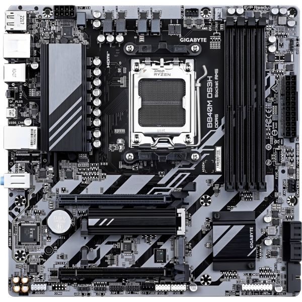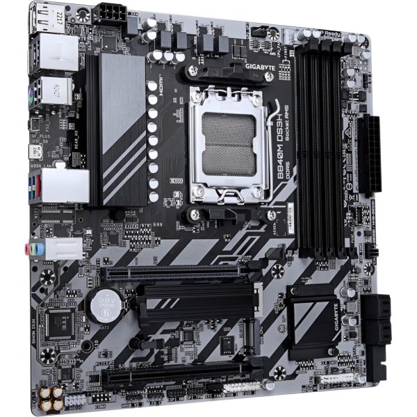 La Placa Madre Gigabyte B840M DS3H AM5 DDR5 es la elección perfecta para los entusiastas del gaming y los expertos en bricolaje que buscan rendimiento y durabilidad. Con un diseño de formato mATX, esta placa base es ideal para configuraciones compactas y potentes. Equipada con el socket AM5, es compatible con los procesadores AMD Ryzen de las series 7000, 8000 y 9000, garantizando una actualización futura sin complicaciones. Su soporte para memoria DDR5 de doble canal a través de 4 ranuras DIMM permite un overclocking de hasta 8200 MT/s, ofreciendo un rendimiento de memoria sin precedentes. El chipset B840, combinado con el Modo Turbo X3D, libera el potencial de juego al proporcionar una experiencia de juego más fluida, mayor velocidad de fotogramas y menor latencia. Con dos ranuras PCIe 4.0 M.2, asegura un almacenamiento ultrarrápido, mientras que la LAN de 2,5 GbE potencia la conectividad para una experiencia de juego en línea sin retrasos. Además, su diseño térmico avanzado y disipadores de calor integrales mantienen el sistema fresco y eficiente. La interfaz de usuario intuitiva y el diseño de hardware fácil de usar, como el EZ-Latch y el Q-FLASH PLUS, facilitan el montaje y la personalización. Ya sea que estés construyendo una nueva computadora o actualizando una existente, la Gigabyte B840M DS3H AM5 DDR5 es la solución definitiva.