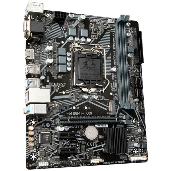 La placa madre H410M H V2 de Gigabyte es una opción ideal para los usuarios que quieren aprovechar los procesadores Intel de 10ª generación. Con dos ranuras de RAM DDR4 de hasta 2933 MHz, cuatro puertos SATA III y un M.2, esta placa madre te ofrece un rendimiento multitarea y de almacenamiento superior.Especificaciones:Factor de Forma: Micro ATXSocket de procesador: LGA 1200Memoria RAM: 4 x DIMM DDR4, 2933 MHz que admiten hasta 64 GB (capacidad de un solo DIMM de 32 GB)Procesadores: Intel Core, Celeron y Pentium 10ª generaciónChipset: Intel H470Almacenamiento: 1 x M.2, 4 x Sata 6 Gb/sAudio: Realtek CODEC de audio, Audio de alta definición, 2/4 / 5.1 / 7.1 canalesSlot de expansión: 1 x PCI Express 3.0 x16, 1 x PCI Express 3.0 x1LAN: Intel GbE LAN chip (1 Gbit/100 Mbit)Interfaz: 1 x PS/2 Teclado/mouse, 1 x D-Sub, 1 x HDMI, 2 x USB 3.2 Gen 1, 4 x USB 2.0/1.1, 1 x RJ-45, 3 x audio jacks