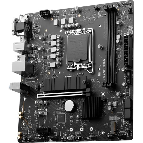 La Placa Madre MSI Pro B760M-G LGA 1700 DDR4 es la elección perfecta para profesionales y entusiastas del hardware que buscan un rendimiento excepcional y una experiencia informática eficiente. Diseñada en formato mATX, esta placa base cuenta con un socket LGA 1700 y el chipset B760, ofreciendo compatibilidad con los procesadores Intel® Core™ de 12ª y 13ª generación, así como con modelos Pentium® Gold y Celeron®. Su compatibilidad con memoria DDR4 de hasta 64GB y frecuencias de overclocking de 4800MHz garantiza un rendimiento de memoria superior. Entre las características destacadas se encuentran el Core Boost, que optimiza la entrega de energía a la CPU, y el M.2 Shield Frozr, que protege y mejora el rendimiento de los SSD M.2. La conectividad también es un punto fuerte, con soporte para LAN 2.5G y múltiples puertos USB, asegurando conexiones rápidas y estables. Además, la tecnología de audio mejorada y la armadura de acero para ranuras PCI-e garantizan una experiencia de sonido envolvente y una protección robusta para tarjetas gráficas. Ideal para tareas de multitarea intensiva y aplicaciones profesionales, la MSI Pro B760M-G DDR4 es una solución confiable para quienes buscan eficiencia y velocidad en sus sistemas informáticos. Su diseño empresarial y su capacidad de expansión la hacen perfecta para cualquier entorno de trabajo exigente.