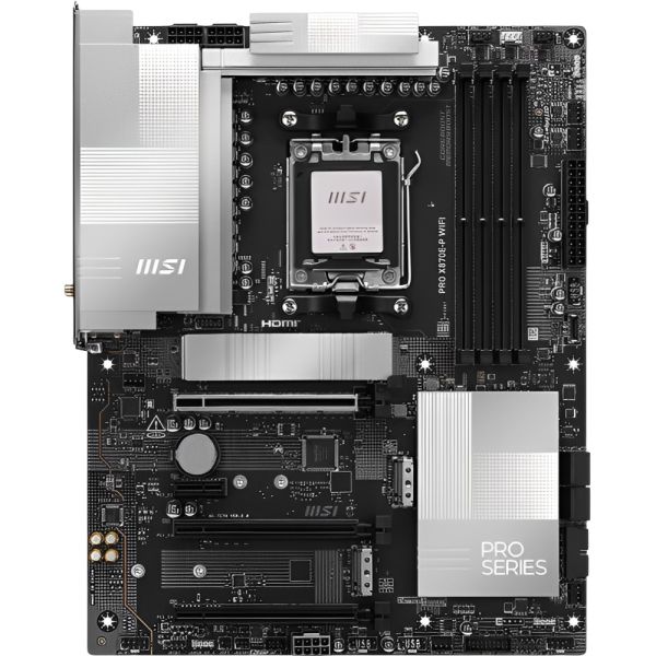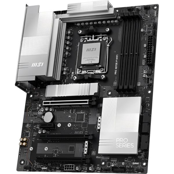La Placa Madre MSI PRO X870E-P Wifi AM5 DDR5 es una joya de la tecnología moderna, ideal para quienes buscan maximizar el rendimiento de su equipo. Esta placa base, compatible con procesadores AMD Ryzen de las series 9000, 8000 y 7000, está diseñada para ofrecer una experiencia informática superior. Su diseño ATX y el chipset X870E garantizan una integración perfecta en cualquier sistema de alto rendimiento. Con soporte para memorias DDR5, esta placa permite alcanzar velocidades de hasta 8200+ MT/s, asegurando una ejecución fluida de aplicaciones exigentes y multitarea eficiente. Las características destacadas de la MSI PRO X870E-P incluyen un sistema de enfriamiento avanzado con disipador de calor extendido y M.2 Shield Frozr II, lo que asegura un rendimiento óptimo bajo condiciones de uso intensivo. Su conectividad de última generación, que incorpora Wi-Fi 7, LAN 5G y múltiples opciones USB4, hacen que esta placa sea ideal para juegos en línea y aplicaciones multimedia que demandan alta velocidad de transferencia y baja latencia. El diseño elegante en tonos plateados la convierte en el complemento perfecto para ordenadores de sobremesa en blanco y negro, mientras que su fácil instalación y manejo, gracias a características como el EZ PCIe Clip II, la hacen accesible incluso para usuarios no técnicos. Con MSI, los usuarios obtienen una combinación perfecta de elegancia y funcionalidad para cualquier entorno profesional o de entretenimiento.