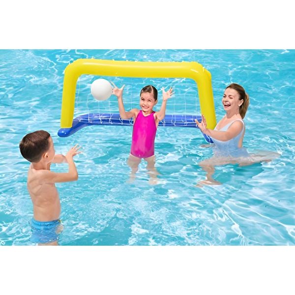 La Portería Inflable Bestway Water Polo Arco + Pelota 52123 es el complemento ideal para disfrutar de juegos acuáticos emocionantes y entretenidos. Diseñada para proporcionar horas de diversión en la piscina o al aire libre, esta portería de water polo es perfecta para niños a partir de 3 años. Fabricada con cloruro de polivinilo y vinilo de nailon de alta calidad, garantiza durabilidad y resistencia al uso. Con unas dimensiones de 135.9 x 64 x 72.1 cm, incluye el arco inflable y una pelota para un juego completo. Su fácil instalación y uso la convierte en una opción conveniente para fomentar el espíritu competitivo y la diversión en familia, creando momentos memorables y disfrutables para todos.
