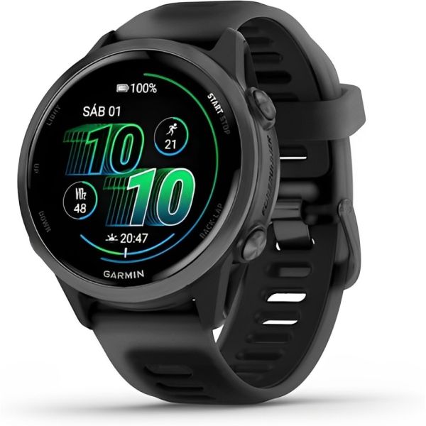 Descubre el Garmin Forerunner 570, el smartwatch de alto rendimiento diseñado para deportistas exigentes que buscan lo último en tecnología y estilo. Con su pantalla AMOLED ultra brillante de 1.2" y un bisel de aluminio ligero, ofrece una visualización clara y vibrante incluso bajo el sol. Su conectividad avanzada con Bluetooth, ANT+ y Wi-Fi, compatibilidad con Android y iOS, y resistencia al agua hasta 5 ATM lo convierten en el compañero perfecto para cualquier entrenamiento. Disfruta de funciones de vanguardia como GPS multibanda con tecnología SatIQ, altavoz y micrófono integrados para llamadas y comandos por voz, y acceso directo a música en tu muñeca desde Spotify o Amazon Music. Optimiza tu rendimiento con entrenamientos adaptativos de Garmin Coach, análisis de VO2 máx, estado de entrenamiento, seguimiento del sueño, y herramientas como Body Battery, detección de siestas, y predicción de carreras. Además, cuenta con seguimiento de salud femenina, pagos sin contacto Garmin Pay, notificaciones inteligentes, y más de 30 aplicaciones deportivas integradas. Ya sea para running, triatlón o fuerza, el Forerunner 570 es el reloj que se adapta a ti, día a día.