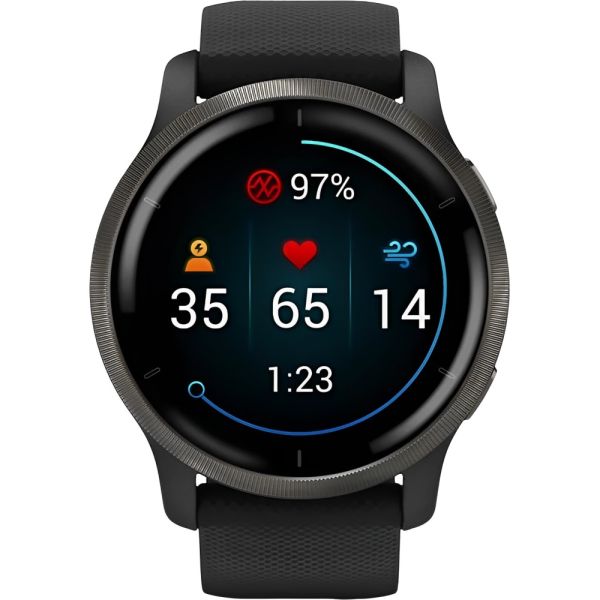 El Reloj Smartwatch Garmin Venu 2 Black Slate Bezel la elección perfecta para aquellos que buscan combinar estilo y funcionalidad. Con un diseño elegante en color negro, este reloj inteligente de Garmin no solo destaca por su apariencia, sino también por su impresionante conjunto de características. Está equipado con una pantalla AMOLED de alta resolución que ofrece imágenes nítidas y vibrantes, ideal para visualizar tus estadísticas de salud y deportes. Entre sus características clave se encuentran el monitoreo avanzado de la salud, que incluye seguimiento del sueño, estrés y niveles de energía a través de la tecnología Body Battery™. Además, incluye entrenamientos animados en pantalla para guiarte en tu rutina diaria, una opción ideal para quienes buscan mejorar su condición física. Con más de 25 aplicaciones deportivas precargadas, el Garmin Venu 2 se adapta a múltiples actividades, desde yoga hasta ciclismo. La duración de la batería de hasta 11 días en modo smartwatch asegura que puedas utilizar todas sus funciones sin preocuparte por recargar constantemente, haciéndolo ideal para el uso durante viajes o jornadas laborales extendidas. Benefíciate de sus opciones de conectividad como notificaciones inteligentes, música y Garmin Pay™ para pagos sin contacto. Optimiza tu estilo y rendimiento con el Reloj Smartwatch Garmin Venu 2 - Black Slate Bezel.