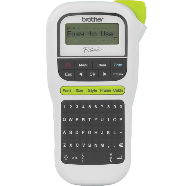 La rotuladora PT-H110 es ideal para organizar tu hogar, tu oficina o cualquier ámbito de tu vida. Cuenta con un teclado QWERTY, un diseño familiar y ergónomico con teclas prácticas estilo PC de un solo toque para una entrada de texto simple y rápida. Presenta una pantalla gráfica con vista previa para revisar tus etiquetas antes de imprimirlas. Personaliza fácilmente tus etiquetas con 3 fuentes, 14 encuadres y más de 250 símbolos. También es útil para organizar tus cables gracias a la función de etiquetado de cable. Crea etiquetas con 1 o 2 renglones de texto. La memoria integrada guarda hasta 15 etiquetas para reimprimirlas con rapidez en el momento que desees. Utiliza las cintas originales Brother "TZe" laminadas, autoadhesivas y duraderas de hasta 12 mm de ancho. Funciona con 6 pilas AAA o con un adaptador opcional de CA (vendidos por separado) para una mayor flexibilidad de uso.