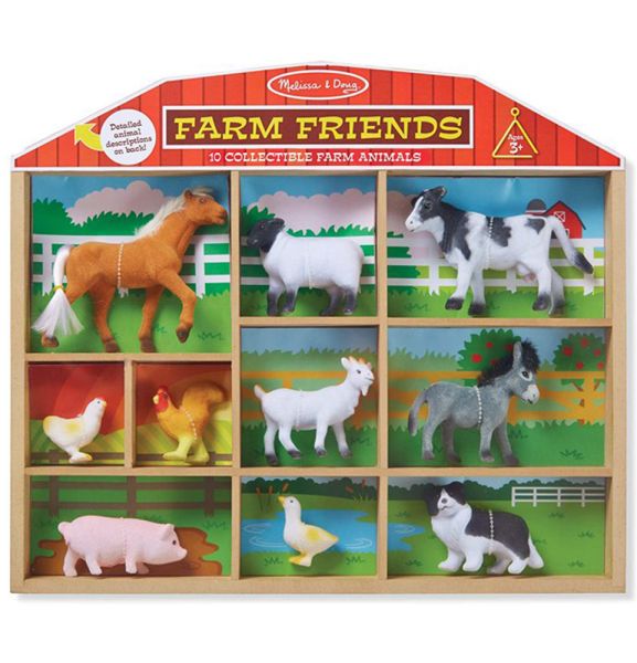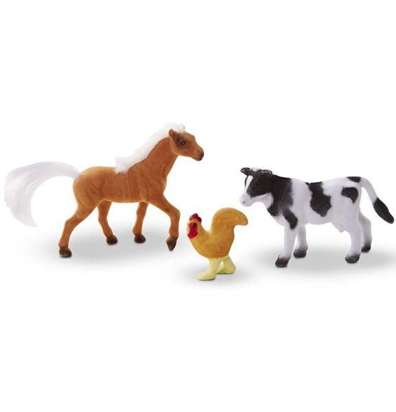 ¡Cultiva interminables horas de juego imaginativo con estos adorables y realistas animales de granja! La colección de 10 modelos en miniatura incluye compañeros de corral de todos los tamaños, desde el caballo con una melena suelta hasta el adorable patito. Todos los animales se guardan en compartimentos individuales en el "granero" de madera. Se incluyen datos divertidos sobre cada animal. ¡A los niños de 3 años en adelante les encantará jugar y aprender sobre lo que sucede en la granja!