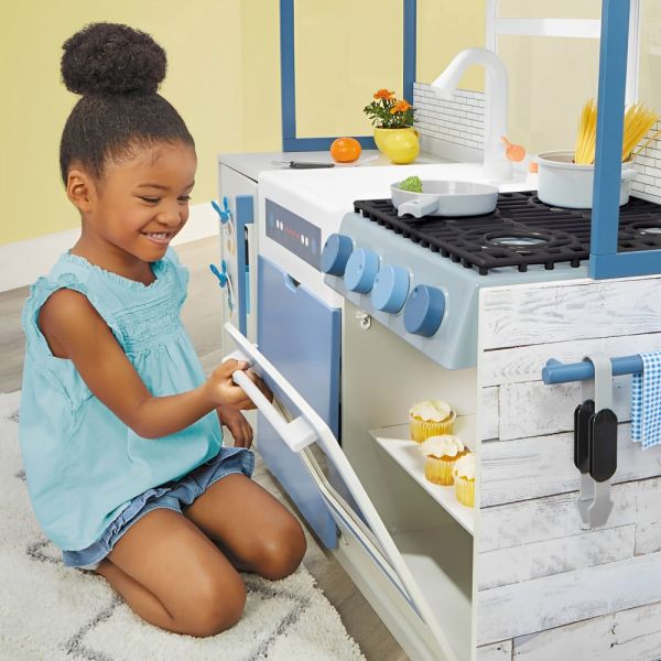 Esta cocina de madera para chef de Little Tikes está equipada con todo lo que los niños necesitan para dejar salir el chef y animador social que llevan dentro. Las perillas, luces y sonidos realistas mejoran el juego en esta resistente cocina de madera, asegurando durabilidad.