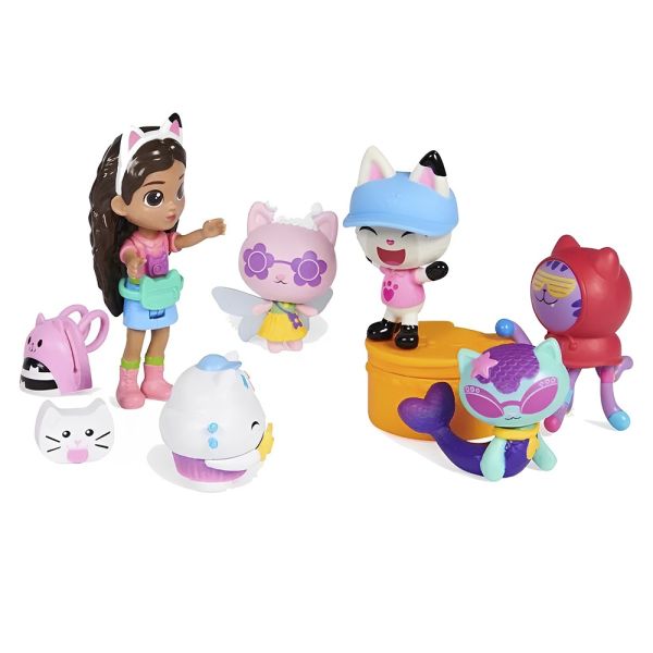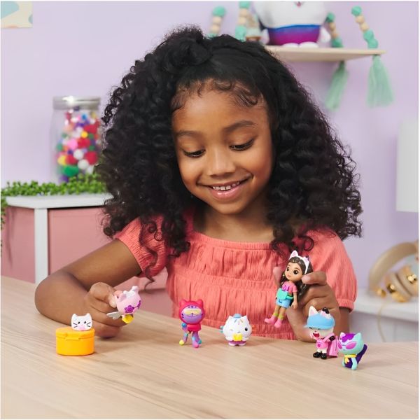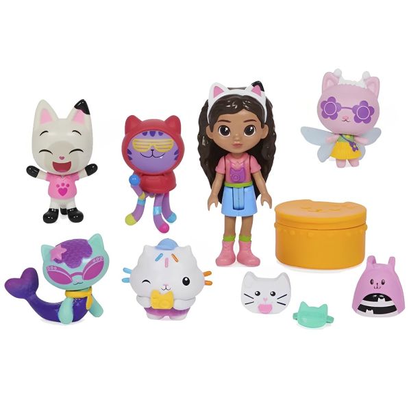Obtenga un mundo de diversión y aventuras con el set de figuras Gabby's Dollhouse Deluxe, un producto imprescindible para los pequeños fanáticos de la serie de Gabby's Dollhouse. Este set incluye 6 figuras coleccionables con detalles auténticos, como Gabby y sus encantadores amigos felinos: Muffins, DJ Catnip, Catnip, Catfish, Pandy Paw y Scrabble. Además, cuenta con accesorios de viaje únicos, como una cámara de gato y una mochila, que estimularán la creatividad y el juego imaginativo de los niños. Al abrir el paquete de entrega, los pequeños descubrirán accesorios sorpresa que enriquecerán aún más sus aventuras. Ideal para niños de 3 años en adelante, es perfecto para crear historias emocionantes en la casa de muñecas de Gabby o en el Crucero (se venden por separado). No olvides escanear el código QR incluido para desbloquear una recompensa exclusiva en la app gratuita Gabby's Dollhouse. Este producto no solo garantiza horas de entretenimiento, sino que también fomenta la creatividad y las habilidades narrativas de los niños.