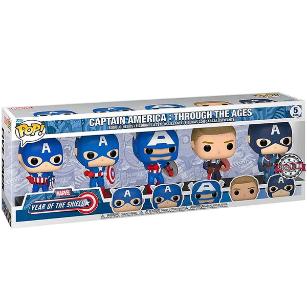 Funko Pop fabricado en vinilo con una altura aproximada de 10 cm. Ahora puedes obtener la evolución completa del Capitán América de una sola vez. Son 5 minifiguras del héroe de la Segunda Guerra Mundial, Steve Rogers, que lucha por los ideales americanos y se destaca como uno de los más poderosos del mundo y líder de los Vengadores. Imprescindible para cualquier verdadero fan de Marvel.