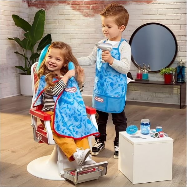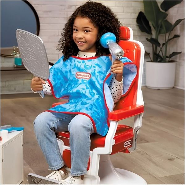 El set de peluquería Unisex Little Tikes es un juguete innovador diseñado para niños a partir de 3 años que transforma el juego en una experiencia de salón de belleza o barbería. Este set de juegos realista incluye una silla giratoria de 360°, permitiendo a los pequeños estilistas atender a sus clientes con facilidad. El secador de pelo que realmente sopla aire y las tijeras que vibran imitan los sonidos reales, proporcionando una experiencia inmersiva. El set está compuesto por 20 accesorios, tales como rizadores, peine, cepillo, tijeras sin corte, espejo seguro para niños, una capa para el cliente y un delantal para el estilista, fomentando el juego de roles y la creatividad. Además, ofrece un práctico espacio de almacenamiento en la silla para organizar todos los utensilios. Este set es ideal para jugar en grupo, ya que varios niños pueden participar a la vez.