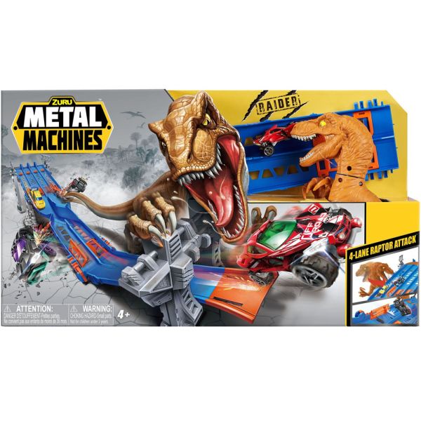 Incluye: Un vehículo, una bestia raptora y la pista de 4 carriles