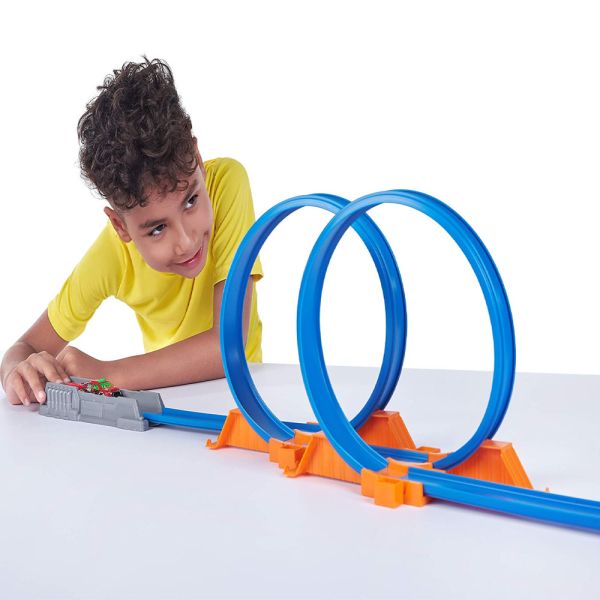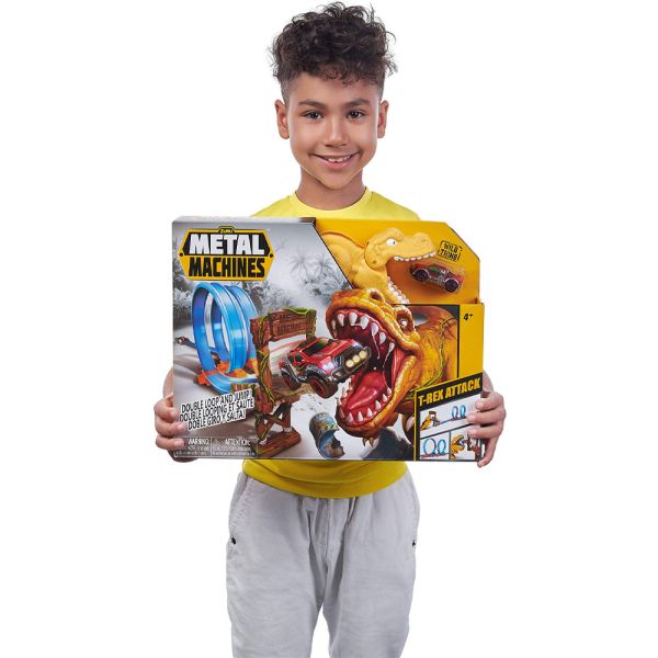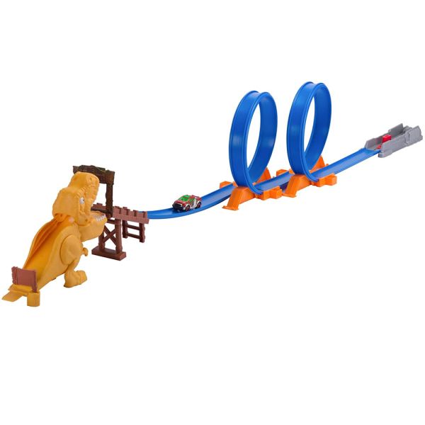 La pista Road Metal Machines de carros con lanzador y un carro todo terreno, para que puedas jugar y divertirte en grande. Enciende los motores y acelera a toda mecha con el lanzador para lograr pasar la espiral de 360 grados. Hay un feroz T-REX devorador y un coche con diseño Original donde podrás conseguir la potencia necesaria para pasar los 2 desafíos 360 y pasar a través del T-Rex. Además, puedes construir suficiente potencia para acelerar a través de los bucles dobles de 360 y directamente a través de la T-Rex en esta emocionante competición.