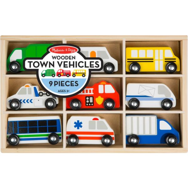 Set de Vehículos Urbanos de Madera Melissa & Doug 3170, diseñado para niños de 3 años en adelante. Este cautivador conjunto no solo ofrece entretenimiento sino también oportunidades de aprendizaje valiosas. Con 9 piezas, incluyendo un camión de reciclaje, un camión de correo, un autobús escolar, una grúa, un camión de bomberos, un camión de helados, un autobús urbano, una ambulancia y un camión de reparto, cada uno de aproximadamente 10 cm de largo. Además, los vehículos se guardan de manera ordenada en una resistente bandeja de madera, facilitando el almacenamiento y la organización.
