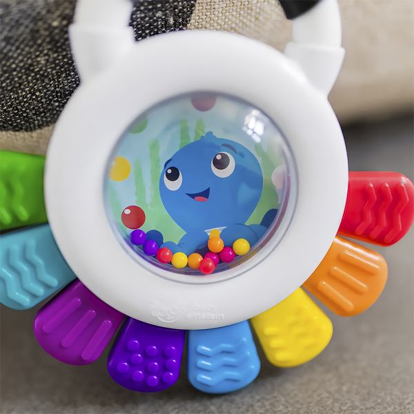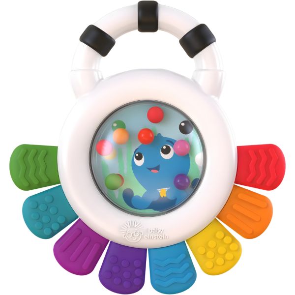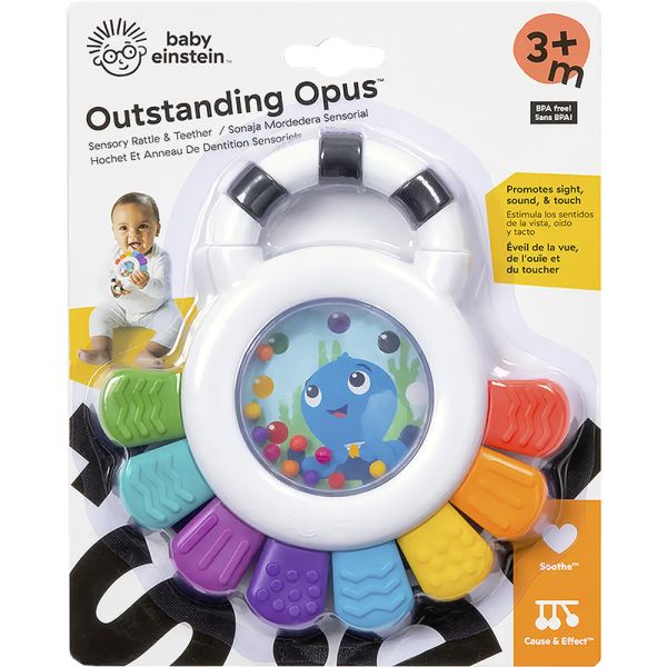 Descubre el sonajero mordedor Outstanding Opus de Baby Einstein, un juguete multisensorial diseñado para estimular los sentidos del bebé de 3 a 36 meses. Con un atractivo diseño divertido y colorido, este mordillo está fabricado con plástico libre de BPA, asegurando la seguridad del pequeño. Este versátil mordedor también funciona como sonajero, con una burbuja con cuentas que produce sonidos atractivos. Además, presenta colores brillantes y de alto contraste, así como 8 texturas mordebles que invitan al bebé a explorar y alivian la dentición. El mordedor destaca por la presencia del simpático personaje Opus the Octopus, conocido de la serie y libros de YouTube de Baby Einstein. La actividad de hacer estallar burbujas añade un elemento interactivo al juguete, introduciendo al bebé a conceptos de causa y efecto de manera divertida. La seguridad es primordial, por lo que este mordedor es lavable a mano y está fabricado con materiales libres de BPA. Además, cuenta con un espejo seguro en la parte posterior para que el bebé pueda descubrir su reflejo de manera segura. Ideal como regalo para baby showers o Navidad, el Sonajero Mordedor Outstanding Opus no solo entretiene sino que también calma las encías del bebé. Su diseño pensado para manos pequeñas y su capacidad para estimular la vista, oído y tacto hacen de este juguete una opción educativa y segura para el desarrollo infantil.