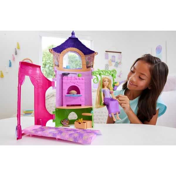 La Torre con Muñeca Mattel Disney Princesas Rapunzel (HLW30) es el sueño hecho realidad para los fanáticos de las princesas Disney y de la película "Enredados". Inspirada en la icónica torre de Rapunzel y sus entrañables personajes, este conjunto de juego lleva la diversión a un nuevo nivel. Con seis áreas de juego distintas, los niños podrán usar su imaginación para recrear escenas clásicas o crear sus propias aventuras mágicas. Desde el dormitorio/tocador transformable hasta la cocina equipada con horno, cada espacio ofrece posibilidades ilimitadas de juego. El área de disfraces para Pascal y el columpio al aire libre añaden aún más diversión interactiva. Además, Pascal puede trepar por el largo cabello de Rapunzel, un efecto que fascinará a los pequeños. La muñeca Rapunzel viene con un vestido púrpura emblemático, falda removible, un cepillo y accesorios para el cabello, permitiendo a los niños experimentar la magia de peinar el cabello tan famoso de esta princesa. Este juguete es un regalo ideal para cualquier ocasión, ofreciendo horas de entretenimiento y creatividad.