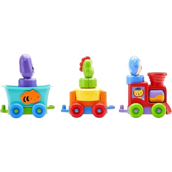 Tren de animales rodante para bebés. Pueden ser rodados por separados o ensamblados para hacer circular todos juntos. Los detalles como la abeja deslizante, el clicker amarillo y la barra giratoria fomentan las habilidades motoras finas. Son coloridos y seguros. Recomendado para niño a partir de los 6 meses en adelante.