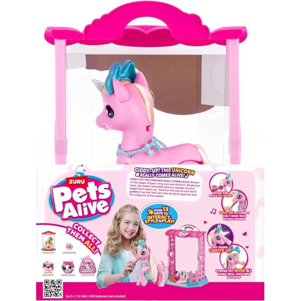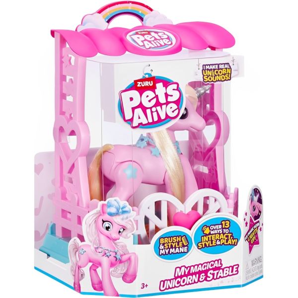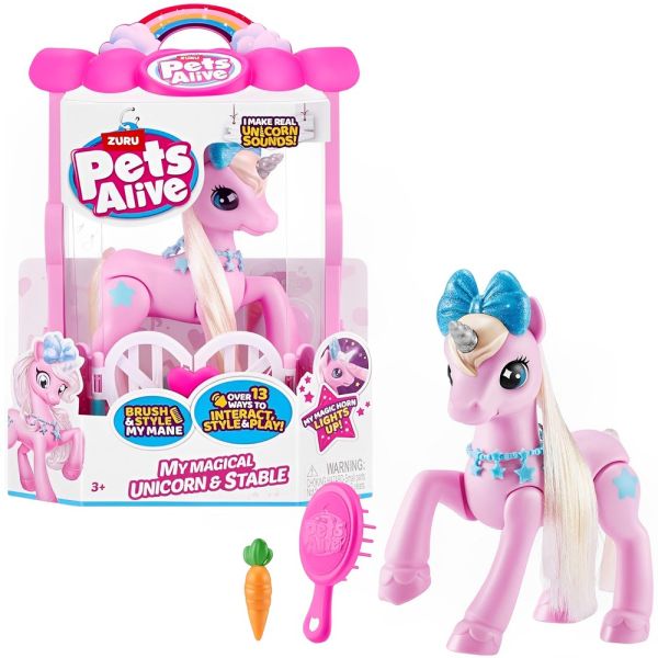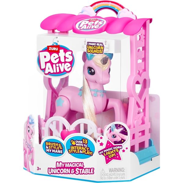 El Unicornio Zuru Pets Alive My Magical Unicorn & Stable 9545 es el regalo perfecto para los pequeños amantes de la fantasía. Está diseñado para ofrecer horas de diversión y aprendizaje, permitiendo que los niños cuiden y jueguen con su propio unicornio mágico. Con más de 13 maneras de interactuar, este unicornio animado es la herramienta ideal para estimular la imaginación. Los niños pueden cepillar y estilizar su melena con el cepillo incluido, alimentarlo con zanahorias y ver cómo su cuerno se ilumina con un brillo mágico, creando una experiencia verdaderamente encantadora. Además, al acariciar su nariz, el unicornio emite sonidos reales, añadiendo realismo al juego. El establo incluido proporciona el refugio perfecto para el unicornio. Este juguete es ideal para niñas y niños que adoran los unicornios y las aventuras mágicas, fomentando el juego creativo y el desarrollo de habilidades motoras finas.