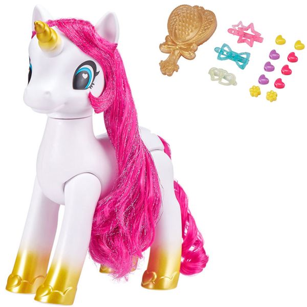 Este unicornio mágico Sparkle Girlz ZU100372 con accesorios, posee cabello largo y suave. Mueve su cabeza de lado a lado para que pueda pararse en diferentes posiciones y puedas peinar su cabello, este juguete viene con un cepillo y un montón de hebillitas para el cabello, proporciona horas de diversión, y también ayuda a desarrollar la creatividad y la imaginación de las pequeñas.