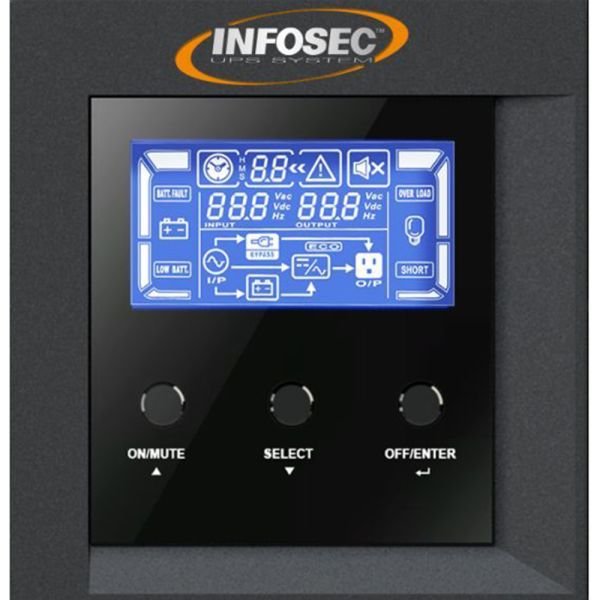 El Ups Infosec E4 LCD Pro asegura el suministro ininterrumpido de energía eléctrica a los equipos conectados y les proporciona energía de buena calidad. En caso de corte del suministro de energía, el UPS toma el control. Esto da tiempo a los usuarios para guardar los trabajos que estén realizando. Equipado con tecnología On Line de doble conversión y un sistema de regulación de voltaje, E4 LCD Pro garantiza a sus dispositivos conectados la distribución de una corriente de calidad regular, incluso durante variaciones importantes de voltaje, sin agotar las baterías. Además, cuenta con una pantalla LCD fácil de usar, proporciona valores de estado, parámetros en tiempo real y acceso directo a los ajustes del SAI para modificar rápidamente los modos de funcionamiento.